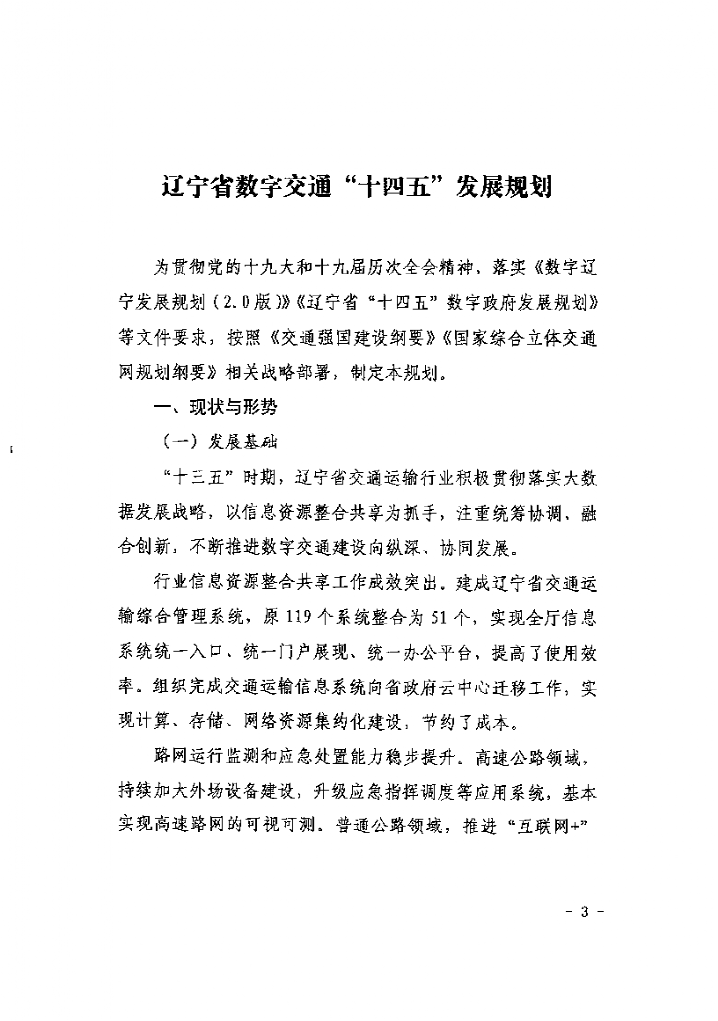 十四五遼寧數(shù)字交通發(fā)展規(guī)劃